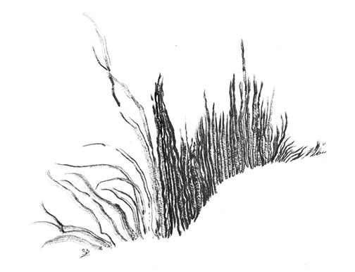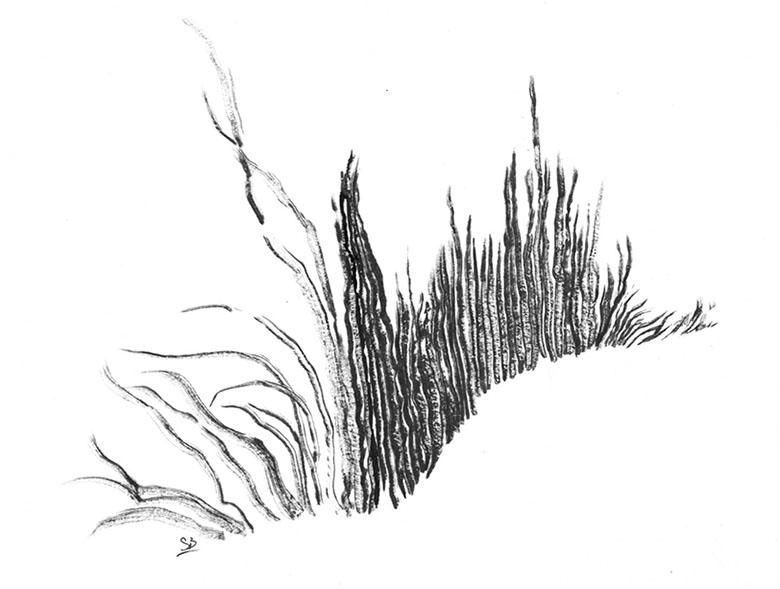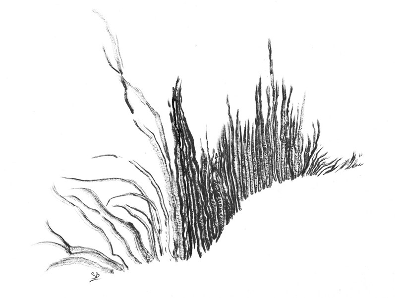 Chaque série: Ombres, Entre deux, Herbes se compose d'une quinzaines d'encre.