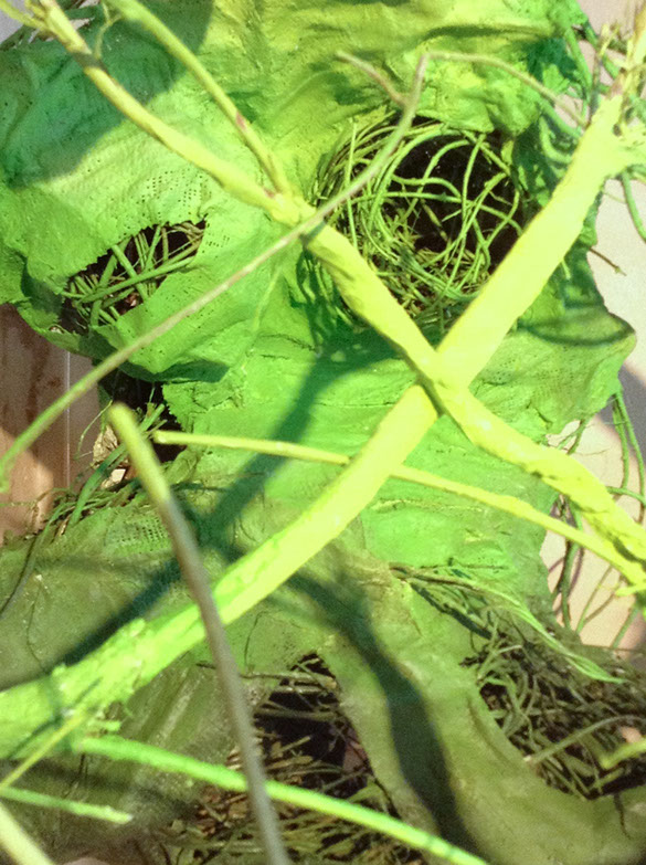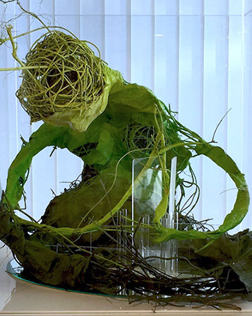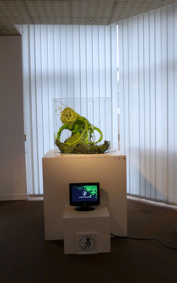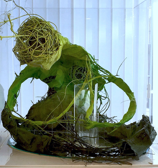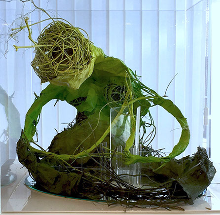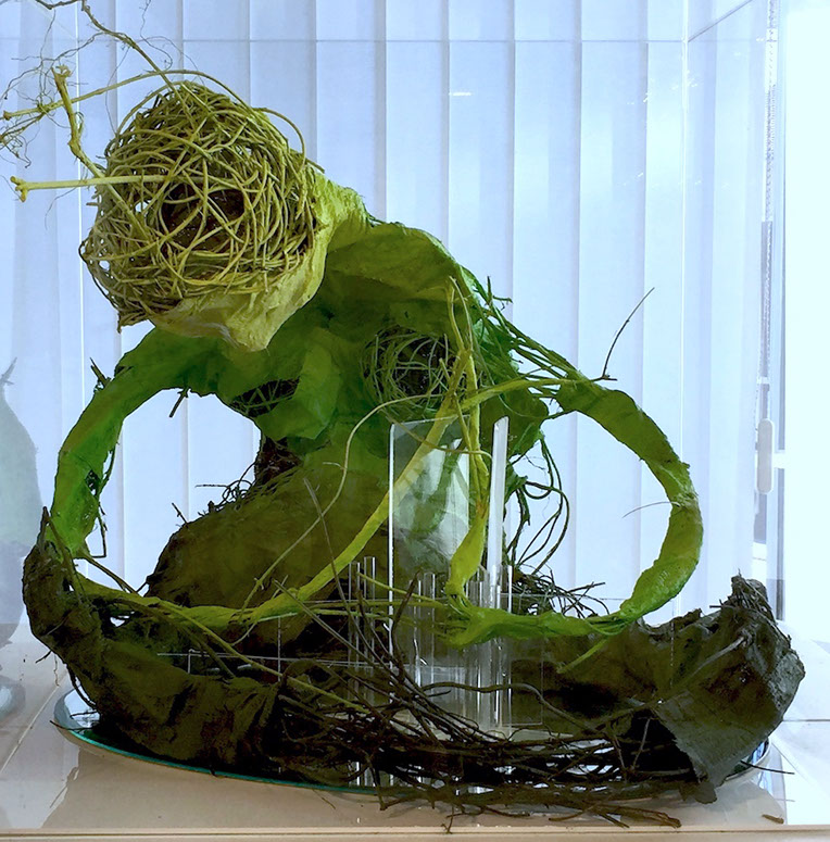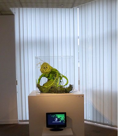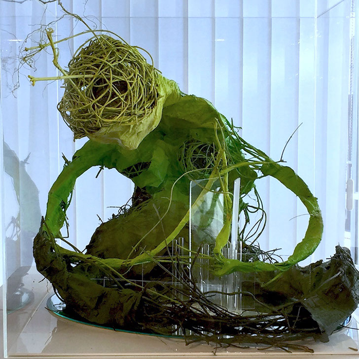 Lianes végétales, bandes de plâtre, plexiglas, miroir.